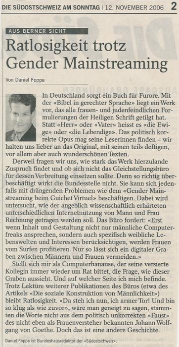Artikel aus der Südostschweiz am Sonntag (12. Nov. 2006) von Daniel Foppa